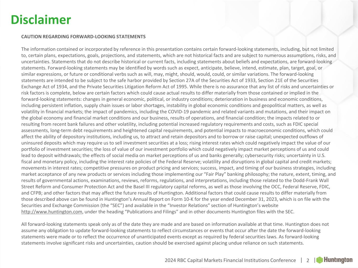 Welcome.® 2024 RBC Capital Markets Financial Institutions Conference The Huntington National Bank is Member FDIC. ®, Huntington® and Huntington. Welcome.® are federally registered service marks of Huntington Bancshares Incorporated. ©2024 Huntington Bancshares Incorporated. March 6, 2024