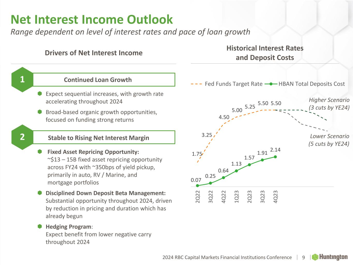 2024 RBC Capital Markets Financial Institutions Conference Further Expanding Commercial Banking Presence in Texas 8 Deploying Proven Commercial Expansion Playbook in Local Markets #1 SBA Lender(3) #1 Projected Population Growth(1) $6B HBAN Loans at 12/31/23 #2 GDP Ranking Nationally(2) Increasing Resources to Gain Market Share  Established, 10+ year presence, with demonstrated track record  Building upon existing, national businesses operating across the state, including:  Asset Finance  Capital Markets / Capstone  Corporate and Specialty Banking  Vehicle Finance  Adding local, dedicated middle market teams Opening Middle Market Office in Dallas #8 Largest Global Economy(4) See notes on slide 19