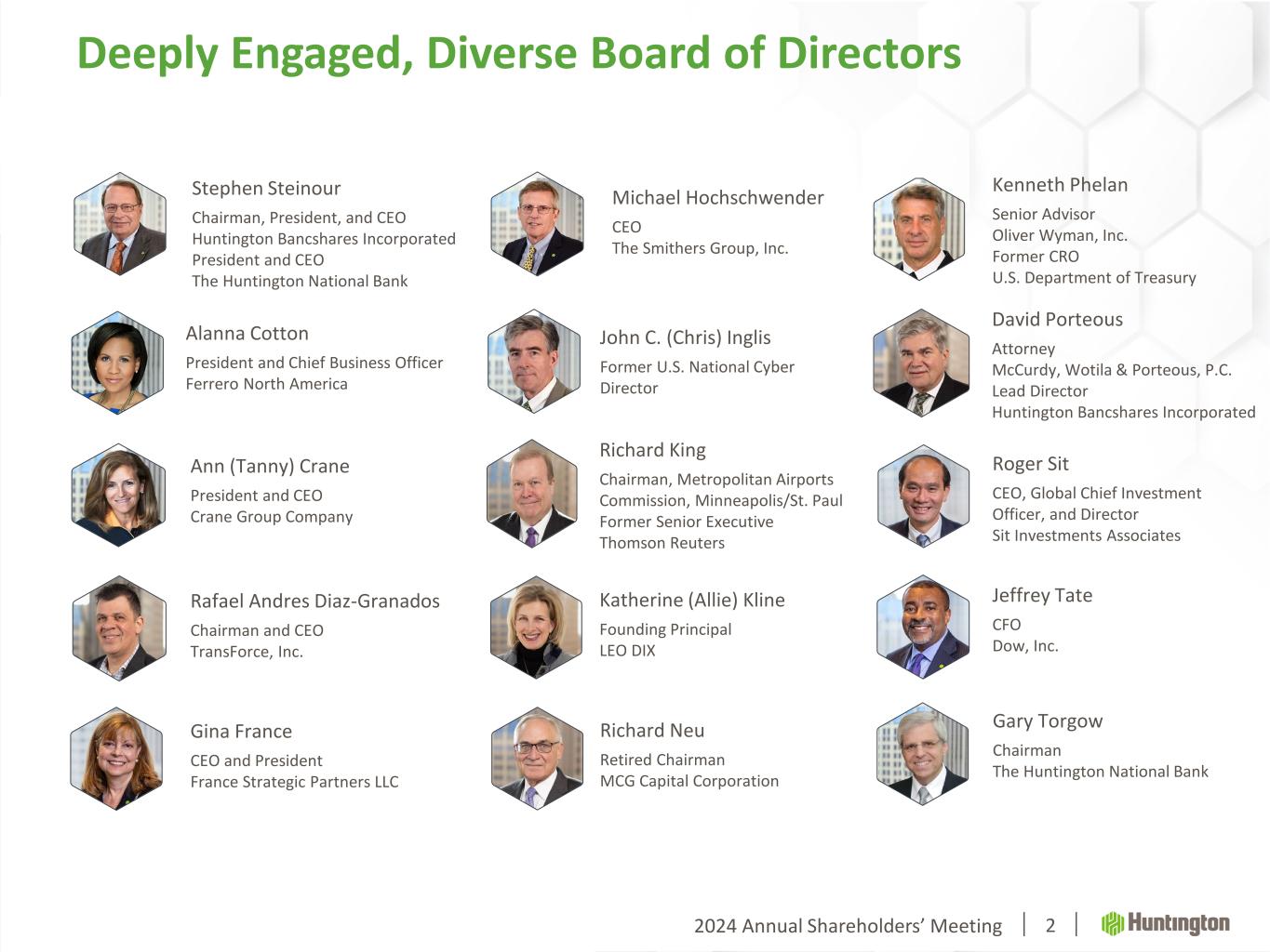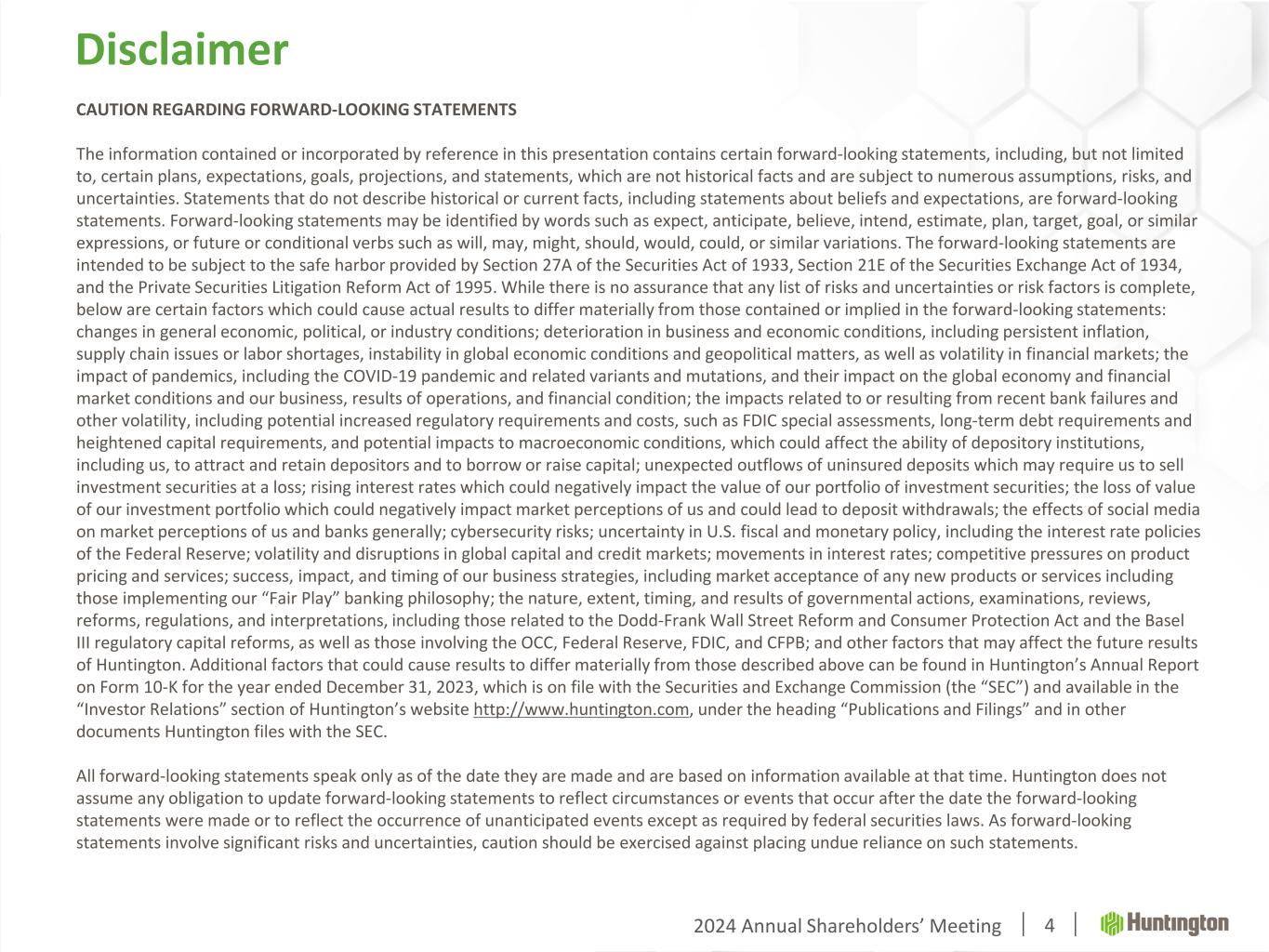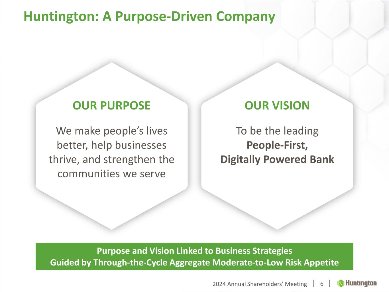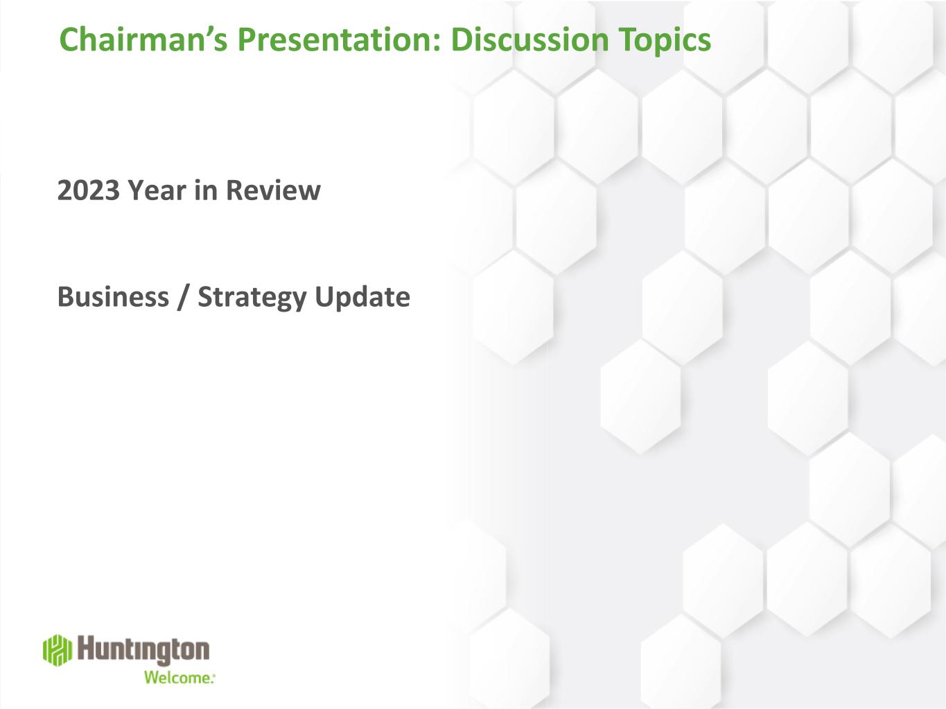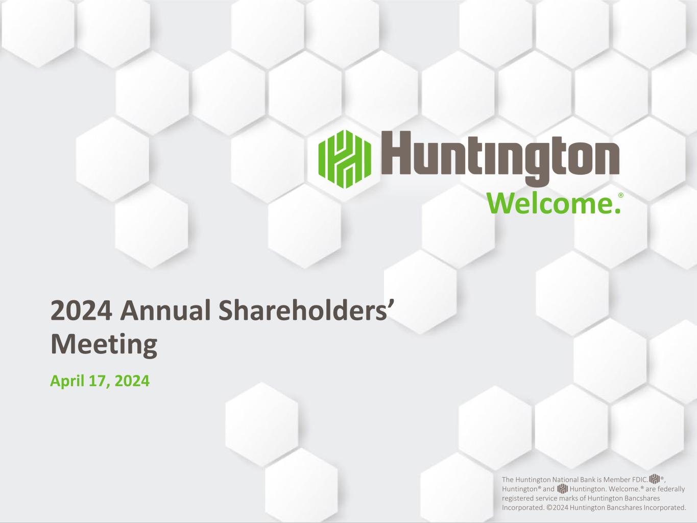 Internal Use Welcome.® 2024 Annual Shareholders’ Meeting April 17, 2024 The Huntington National Bank is Member FDIC. ®, Huntington® and Huntington. Welcome.® are federally registered service marks of Huntington Bancshares Incorporated. ©2024 Huntington Bancshares Incorporated.