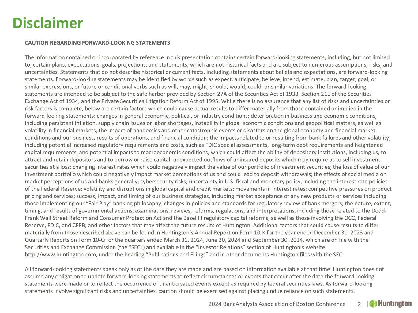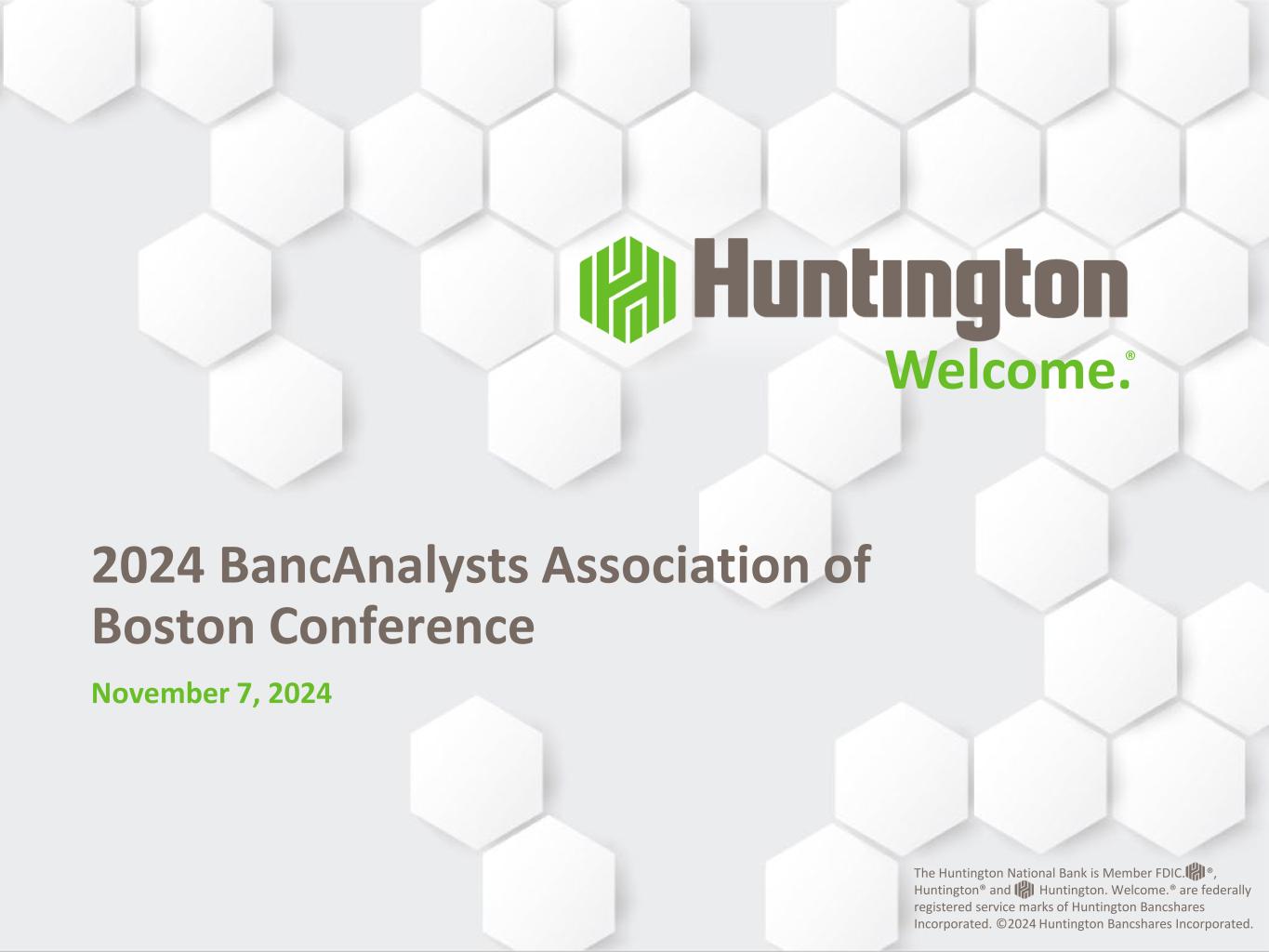 2024 BancAnalysts Association of Boston Conference Welcome.® 2024 BancAnalysts Association of Boston Conference November 7, 2024 The Huntington National Bank is Member FDIC. ®, Huntington® and Huntington. Welcome.® are federally registered service marks of Huntington Bancshares Incorporated. ©2024 Huntington Bancshares Incorporated.