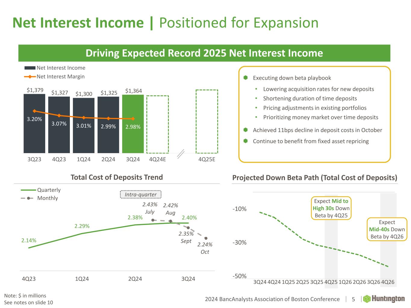 2024 BancAnalysts Association of Boston Conference Delivering Accelerated Organic Growth 1 Expanding Net Interest Income 2 Driving Fee Revenues Higher 3 Maintaining Strong Credit Performance 4  Robust production in core and new initiatives  Delivered 6.3% annualized loan growth (EOP)  Average deposit growth of 5.6% YoY  Managing dynamic interest rate environment  Executing down beta playbook, expecting mid-40s down beta by 4Q26  Proactively reducing asset sensitivity  Focused on payments, wealth management, and capital markets  Launched in-house merchant acquiring capabilities  Wealth Management AUM +22% YoY  Capital Markets revenues +50% YoY  Top quartile NCOs vs. peers(1)  Top tier ACL  Disciplined credit management leading to through the cycle outperformance Discussion Topics 3 Building Profit Growth Momentum 5  Expect record net interest income in FY25  Maintaining disciplined expense management Note: All stats as of 3Q24 unless otherwise noted See notes on slide 10