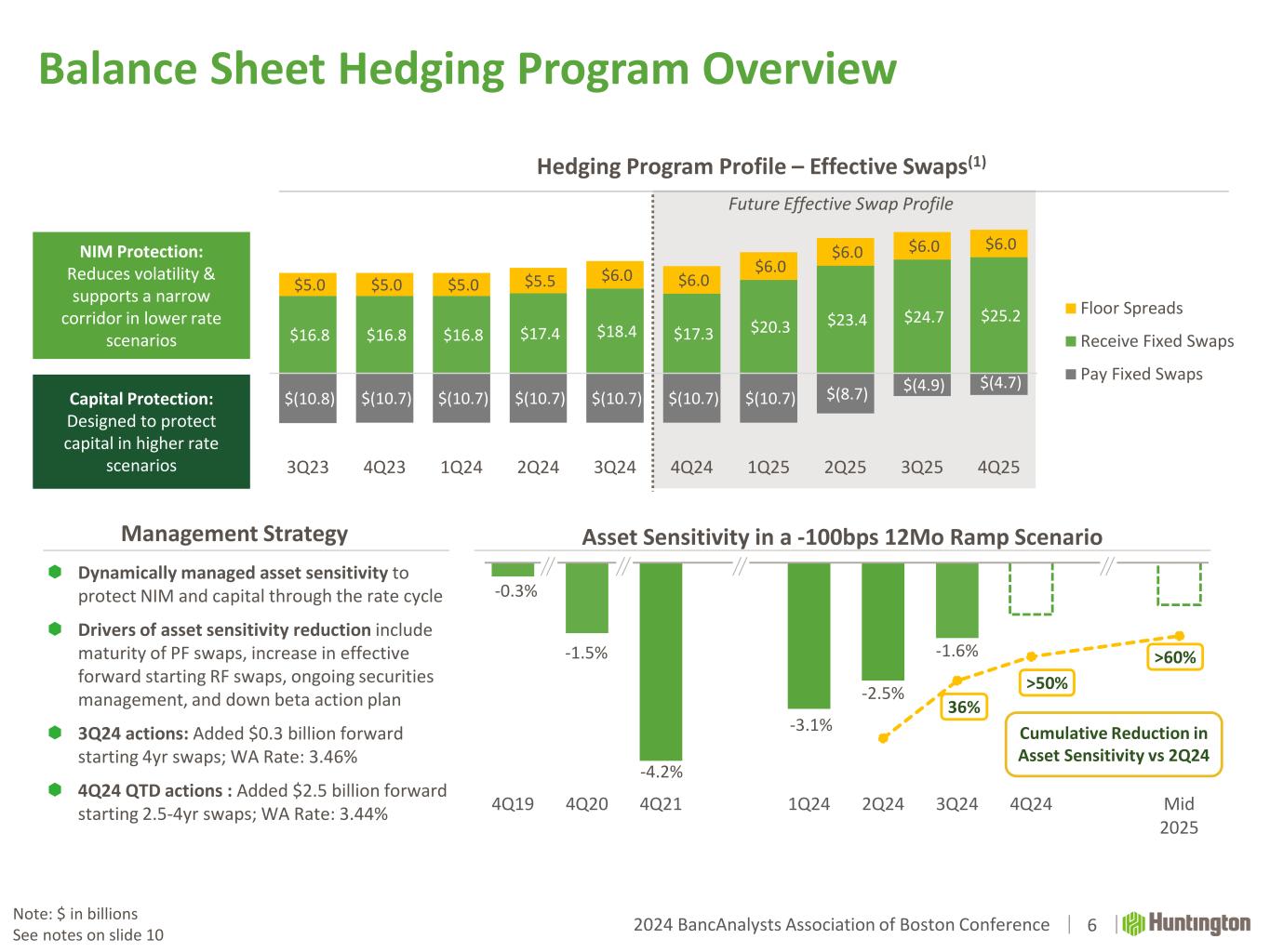 2024 BancAnalysts Association of Boston Conference Net Interest Income | Positioned for Expansion $1,379 $1,327 $1,300 $1,325 $1,364 3.20% 3.07% 3.01% 2.99% 2.98% 3Q23 4Q23 1Q24 2Q24 3Q24 4Q24E 4Q25E Net Interest Income Net Interest Margin 2.14% 2.29% 2.38% 2.40% 2.43% July 2.42% Aug 2.35% Sept 2.24% Oct 4Q23 1Q24 2Q24 3Q24 24-Oct Quarterly Monthly Total Cost of Deposits Trend Intra-quarter -50% -30% -10% 3Q24 4Q24 1Q25 2Q25 3Q25 4Q25 1Q26 2Q26 3Q26 4Q26 Projected Down Beta Path (Total Cost of Deposits) Expect Mid to High 30s Down Beta by 4Q25 Expect Mid-40s Down Beta by 4Q26 5 Driving Expected Record 2025 Net Interest Income  Executing down beta playbook • Lowering acquisition rates for new deposits • Shortening duration of time deposits • Pricing adjustments in existing portfolios • Prioritizing money market over time deposits  Achieved 11bps decline in deposit costs in October  Continue to benefit from fixed asset repricing Note: $ in millions See notes on slide 10