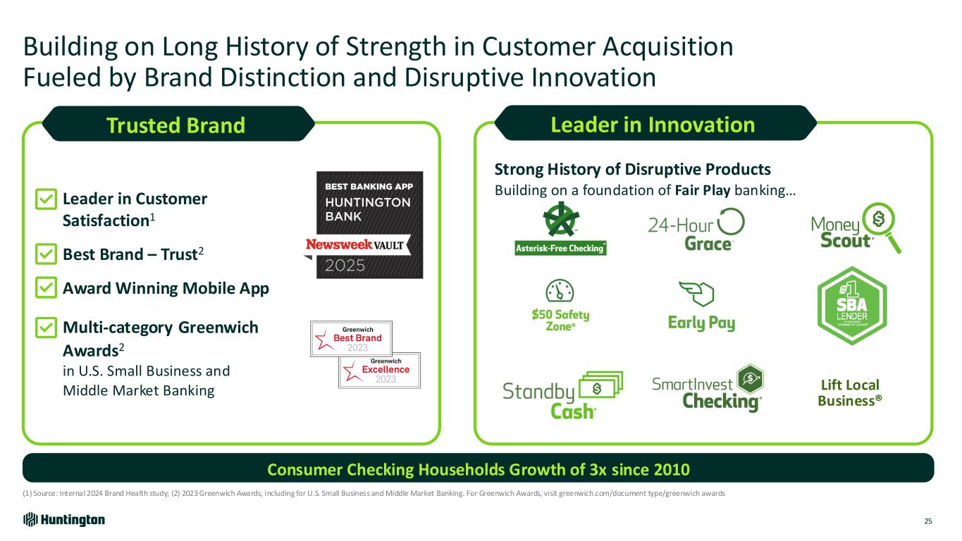 Leader in Customer Satisfaction1 Best Brand – Trust2 Award Winning Mobile App Multi-category Greenwich Awards2 in U.S. Small Business and Middle Market Banking Building on Long History of Strength in Customer Acquisition Fueled by Brand Distinction and Disruptive Innovation 25 Consumer Checking Households Growth of 3x since 2010 Strong History of Disruptive Products Building on a foundation of Fair Play banking… Lift Local Business® Trusted Brand Leader in Innovation (1) Source: Internal 2024 Brand Health study; (2) 2023 Greenwich Awards, including for U.S. Small Business and Middle Market Banking. For Greenwich Awards, visit greenwich.com/document type/greenwich awards