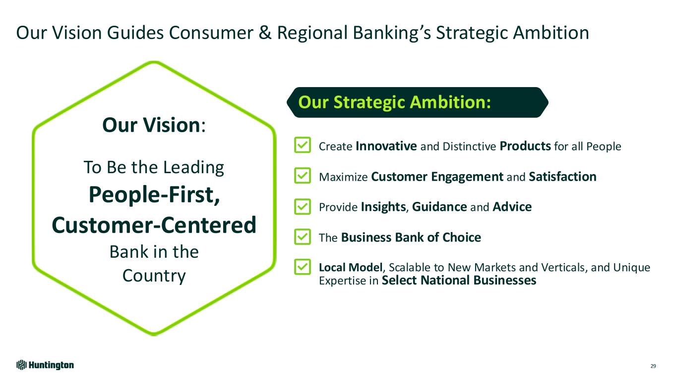 Strong Execution and Financial Results Since 2022 Investor Day 28 (1) Period Average $62.9 $65.3 $69.2 2022 2023 2024 $287 $319 $362 2022 2023 2024 $105.5 $105.8 $110.2 2022 2023 2024 2.2% CAGR 4.9% CAGR 12.3% CAGR Deposit Growth +$4.7B Loan Growth +$6.3B Wealth Fee Revenue +$75M result since ’22 result since ’22 result since ’22 Wealth Management Fee Revenue $M Total Deposits1 $B Total Loans1 $B