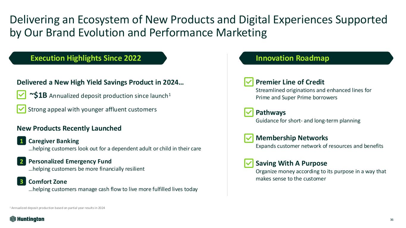 Building on Our History of Disruptive Innovation with Investment in Customer Value Proposition for Select Customer Segments 35 Comprehensive Delivery Ecosystem New Products and Features Digital Innovation Personalized Advice Best in Category Service Omni Channel Delivery Brand Evolution Unique Customer Jobs to unlock their full potential to be prepared for the future to support their family & network to live fulfilled lives today to be financially resilient $7B+ Deposit Growth from Acquisition & Deepening 100K+ Incremental Consumer Household Acquisition The OpportunityCustomer Centric Innovation Enables Continued Acquisition