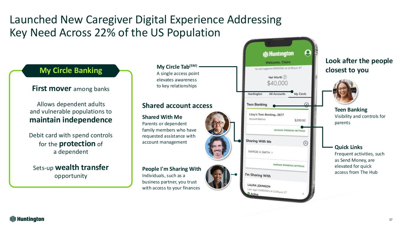 Delivering an Ecosystem of New Products and Digital Experiences Supported by Our Brand Evolution and Performance Marketing 36 1 Annualized deposit production based on partial year results in 2024 ~$1B Annualized deposit production since launch1 Strong appeal with younger affluent customers Caregiver Banking …helping customers look out for a dependent adult or child in their care Personalized Emergency Fund …helping customers be more financially resilient Comfort Zone …helping customers manage cash flow to live more fulfilled lives today 1 Premier Line of Credit Streamlined originations and enhanced lines for Prime and Super Prime borrowers Pathways Guidance for short- and long-term planning Membership Networks Expands customer network of resources and benefits Saving With A Purpose Organize money according to its purpose in a way that makes sense to the customer Innovation RoadmapExecution Highlights Since 2022 Delivered a New High Yield Savings Product in 2024… New Products Recently Launched 2 3