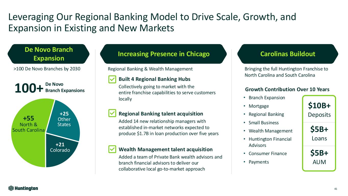1 2 3 4 Well-Positioned to Scale Our Vehicle Finance Business Model Nationally 40 Note: data as of 4Q24 National Provider with Unique Integrated Business Model and Localized Go-to-Market Strategy at Scale Strong Dealer Relationships • Local go-to-market strategy delivering outstanding customer service for over 75+ years • Comprehensive Commercial Relationship offering Leveraging Dealer Relationships to Drive Indirect Auto Lending • Highly efficient, digitized underwriting process • Targeting Prime and Super Prime Customers Bringing the Entire Bank to Deepen Relationships • Dealers: Treasury Management, Capital Markets, Insurance, Private Banking • Consumers: Deposits, Mortgage, Credit Card, Private Banking, Insurance, Investments Capitalizing on Geographic Expansion • Targeting new dealer relationships in the Carolinas and Texas to increase commercial and indirect Lending growth • Further expansion into high opportunity markets 35 Indirect RV / Marine States 75+ Years commitment & experience $5B+ Commercial Dealer Outstandings 33 Indirect Auto States Top 5 RV/Marine Lender 781 Avg. FICO Indirect Auto Originations $20B+ Indirect Consumer Outstandings Top 10 Bank Auto Lender