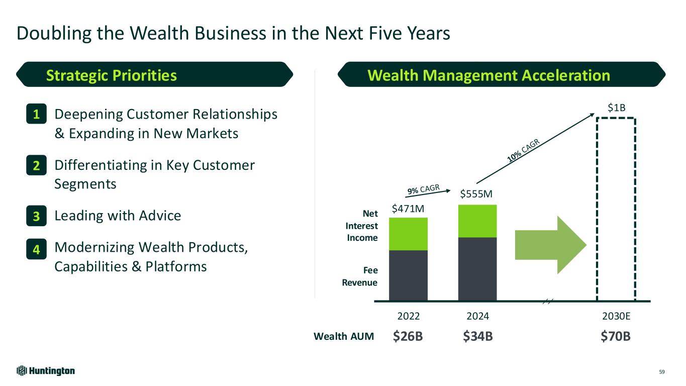 $1.4 $3.2 2022 2024 Strong Execution and Financial Results since 2022 Investor Day 58 (1) Existing customer deposits pre-launch (2022); deposit growth from existing and new customers $26.1 $34.0 2022 2024 Total Assets Under Management ($B) 28.5 34.3 2022 2024 Total Advisory Households (K) SmartInvest® Deposits ($B)1 $287 $362 2022 2024 Total Fee Revenue ($M) 10% CAGR 14% CAGR 12% CAGR 51% CAGR