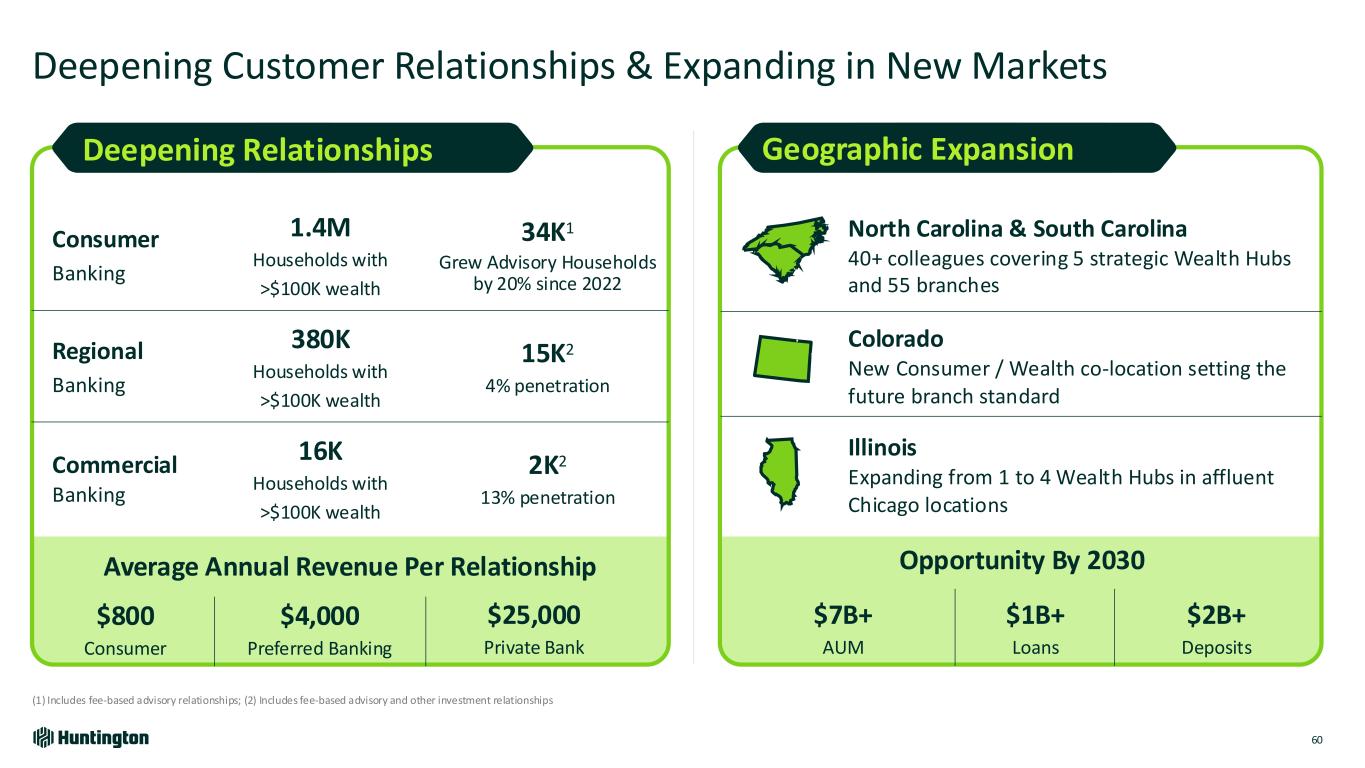2022 2024 2030E Doubling the Wealth Business in the Next Five Years 59 $1B Net Interest Income Fee Revenue $471M $555M Wealth AUM $26B $34B $70B Deepening Customer Relationships & Expanding in New Markets Differentiating in Key Customer Segments Leading with Advice Modernizing Wealth Products, Capabilities & Platforms Strategic Priorities Wealth Management Acceleration 1 2 3 4