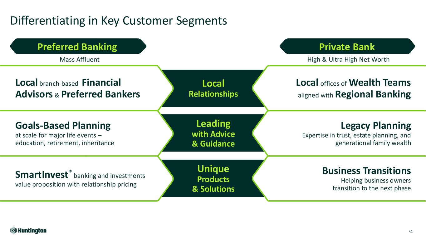 Deepening Customer Relationships & Expanding in New Markets 60 (1) Includes fee-based advisory relationships; (2) Includes fee-based advisory and other investment relationships Consumer Banking 1.4M Households with >$100K wealth 34K1 Grew Advisory Households by 20% since 2022 Regional Banking 380K Households with >$100K wealth 15K2 4% penetration Commercial Banking 16K Households with >$100K wealth 2K2 13% penetration Average Annual Revenue Per Relationship North Carolina & South Carolina 40+ colleagues covering 5 strategic Wealth Hubs and 55 branches Colorado New Consumer / Wealth co-location setting the future branch standard Illinois Expanding from 1 to 4 Wealth Hubs in affluent Chicago locations Opportunity By 2030 Deepening Relationships Geographic Expansion $25,000 Private Bank $4,000 Preferred Banking $800 Consumer $7B+ AUM $1B+ Loans $2B+ Deposits