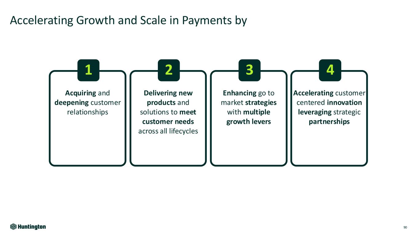 Accelerating Growth and Scale in Payments by 90 Acquiring and deepening customer relationships Delivering new products and solutions to meet customer needs across all lifecycles Enhancing go to market strategies with multiple growth levers Accelerating customer centered innovation leveraging strategic partnerships 1 2 3 4