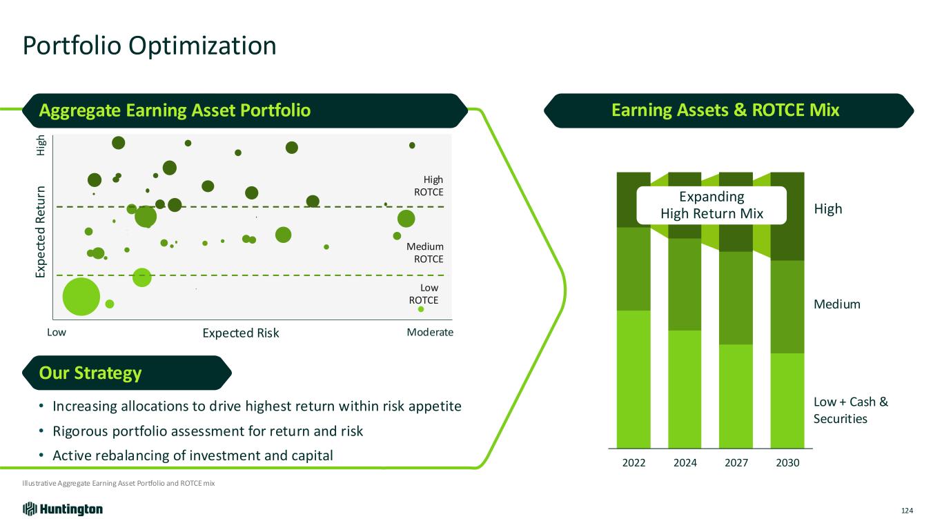 2022 2024 2027 2030 Portfolio Optimization Illustrative Aggregate Earning Asset Portfolio and ROTCE mix Earning Assets & ROTCE Mix High ROTCE Medium ROTCE Expected Risk Ex p e ct e d R et u rn Low Moderate H ig h • Increasing allocations to drive highest return within risk appetite • Rigorous portfolio assessment for return and risk • Active rebalancing of investment and capital Aggregate Earning Asset Portfolio Our Strategy 124 Low ROTCE High Medium Low + Cash & Securities Expanding High Return Mix