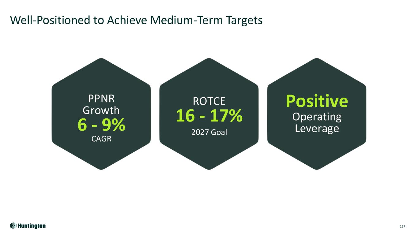 Well-Positioned to Achieve Medium-Term Targets 137 PPNR Growth 6 - 9% CAGR Positive Operating Leverage ROTCE 16 - 17% 2027 Goal