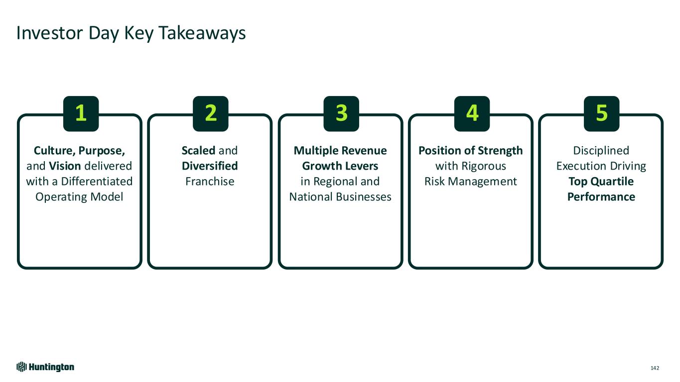Culture, Purpose, and Vision delivered with a Differentiated Operating Model Scaled and Diversified Franchise Multiple Revenue Growth Levers in Regional and National Businesses Position of Strength with Rigorous Risk Management Disciplined Execution Driving Top Quartile Performance Investor Day Key Takeaways 142 1 2 3 4 5