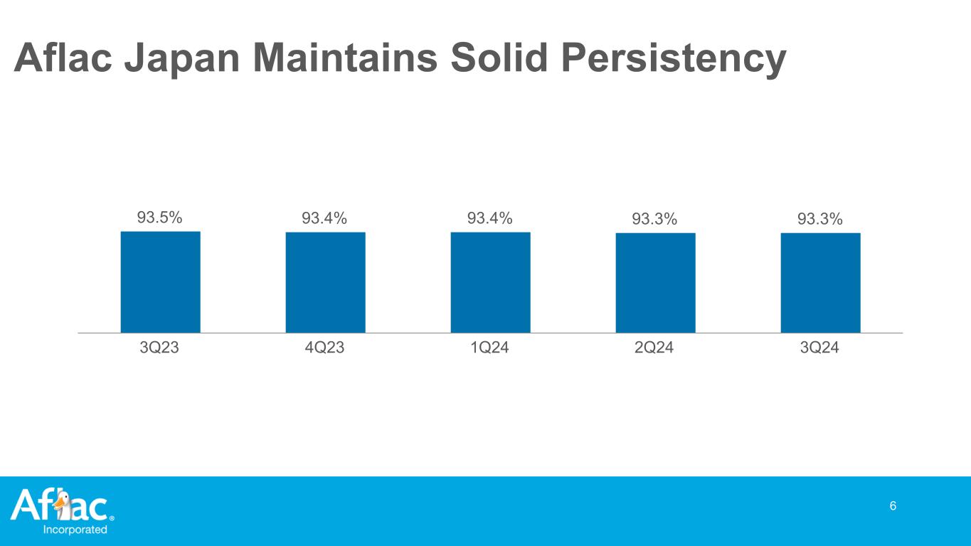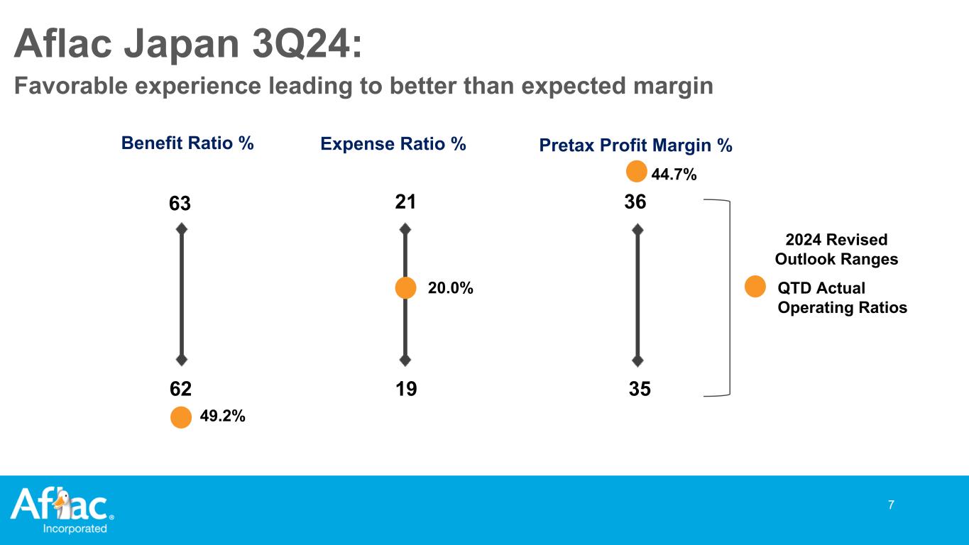 Aflac Japan Maintains Solid Persistency 93.5% 93.4% 93.4% 93.3% 93.3% 3Q23 4Q23 1Q24 2Q24 3Q24 6