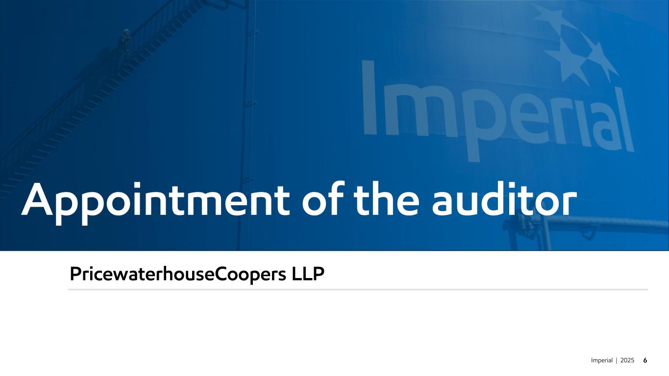 Imperial | 2025 6 Appointment of the auditor PricewaterhouseCoopers LLP