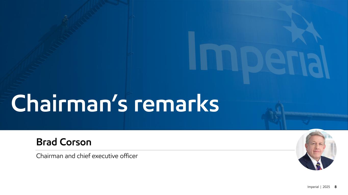 Imperial | 2025 8 Chairman’s remarks Brad Corson Chairman and chief executive officer