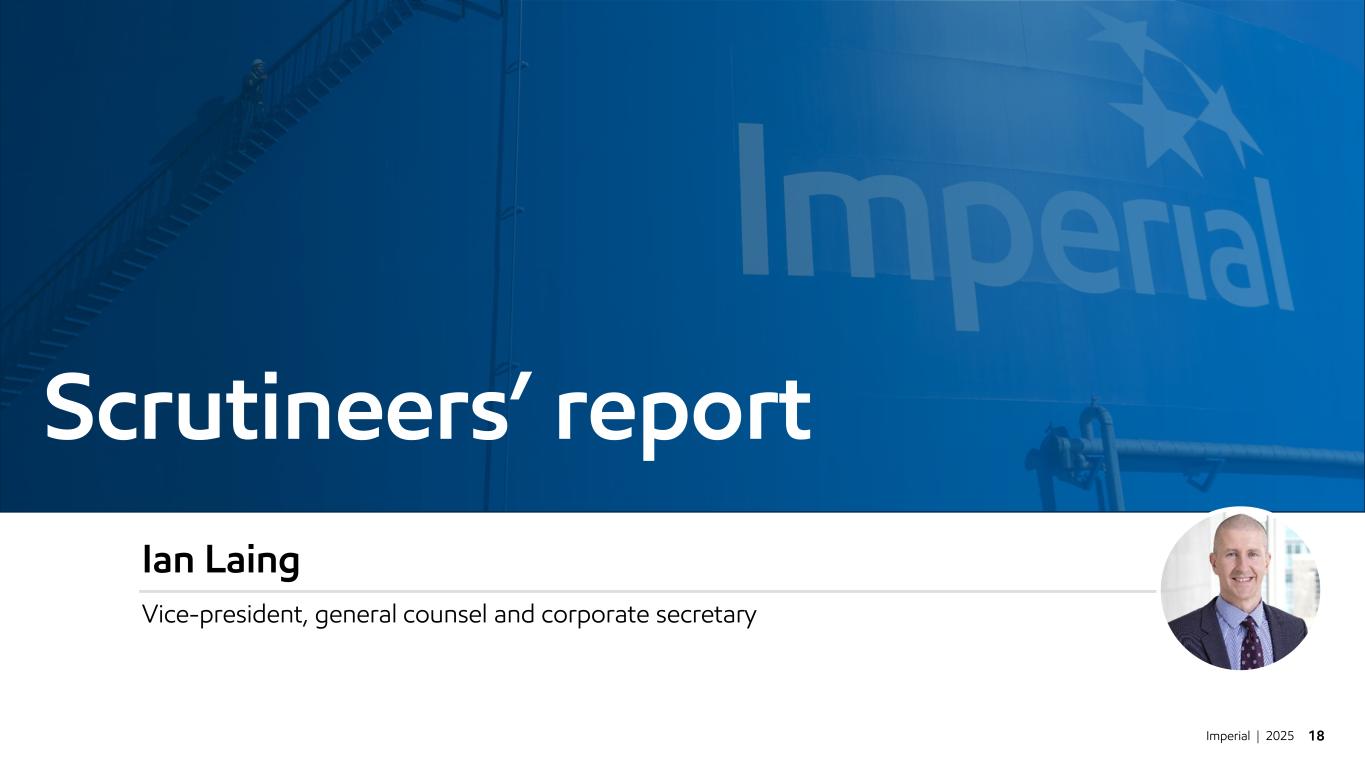 Imperial | 2025 18 Scrutineers’ report Ian Laing Vice-president, general counsel and corporate secretary