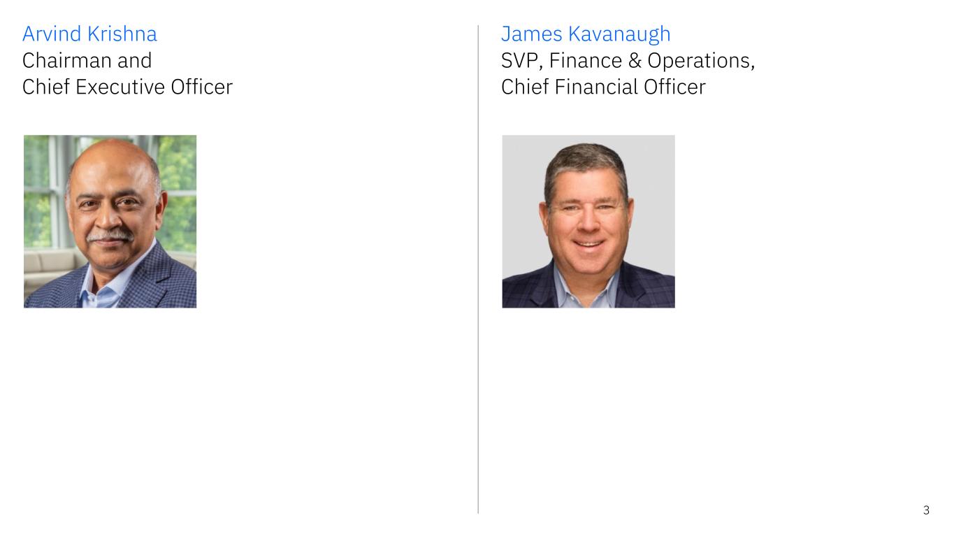 3 Arvind Krishna Chairman and Chief Executive Officer James Kavanaugh SVP, Finance & Operations, Chief Financial Officer