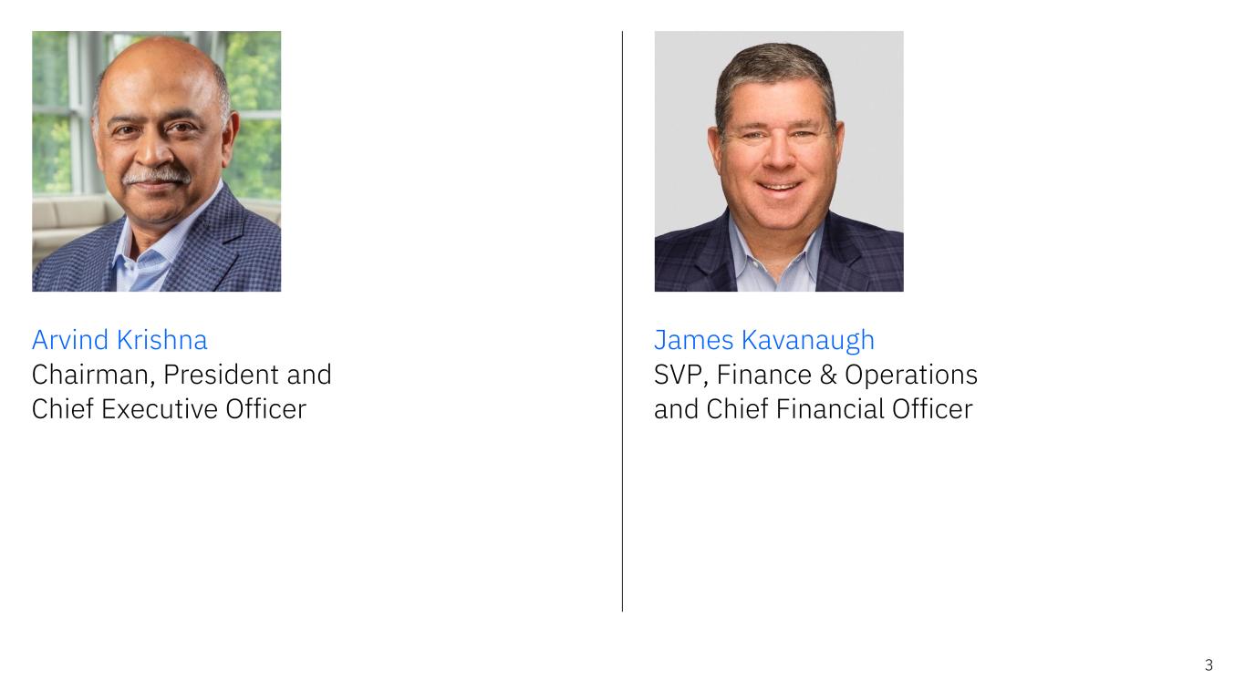 3 Arvind Krishna Chairman, President and Chief Executive Officer James Kavanaugh SVP, Finance & Operations and Chief Financial Officer