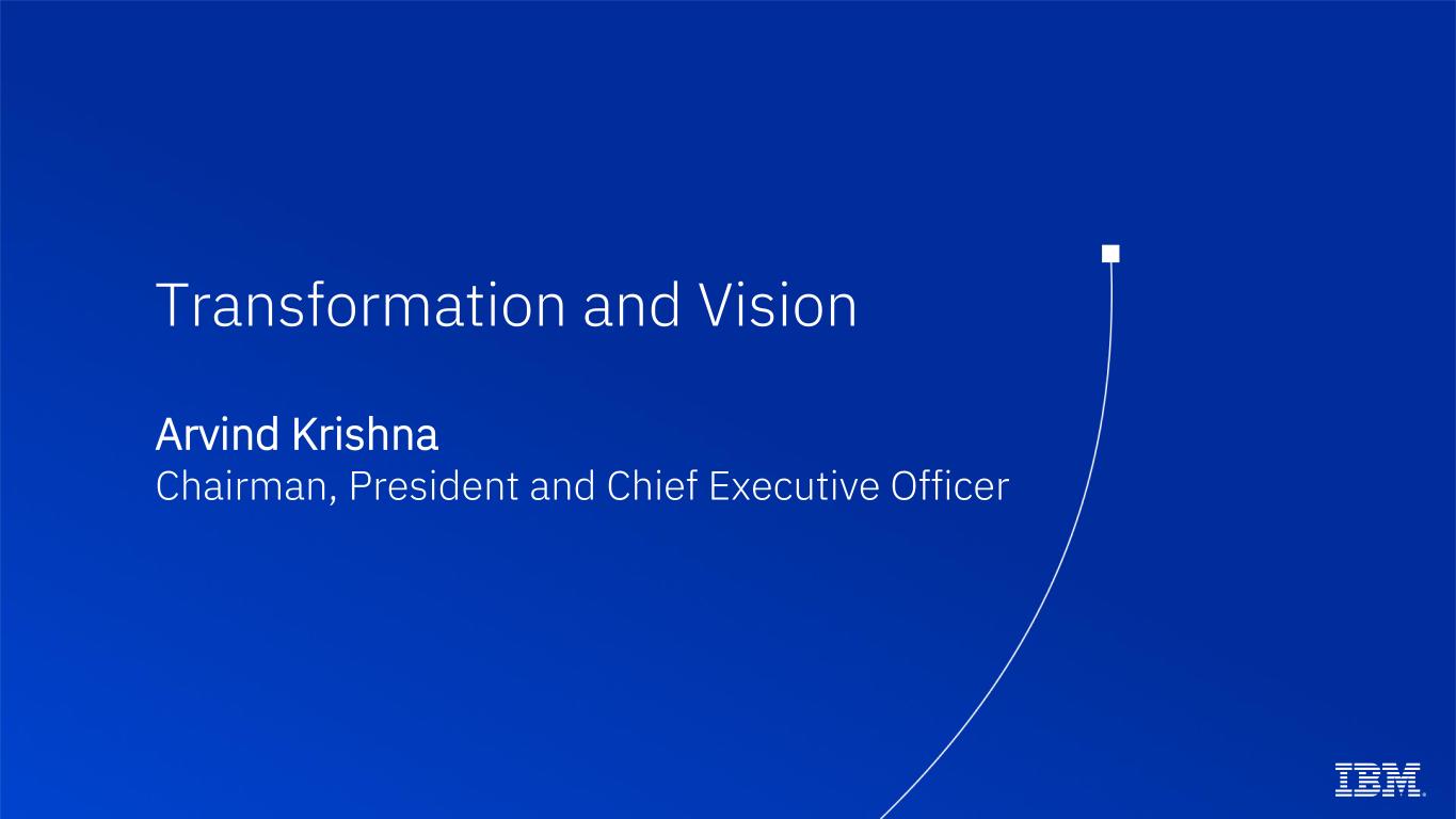 Transformation and Vision Arvind Krishna Chairman, President and Chief Executive Officer