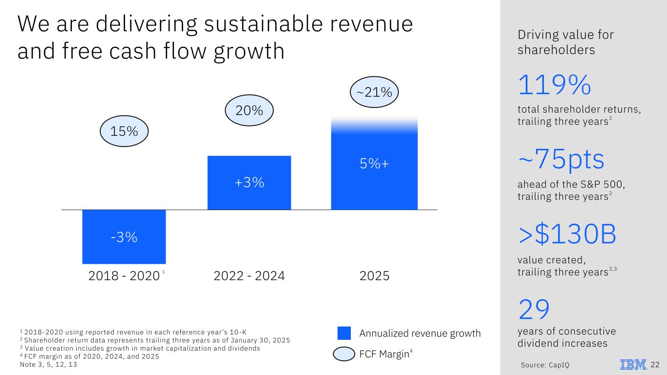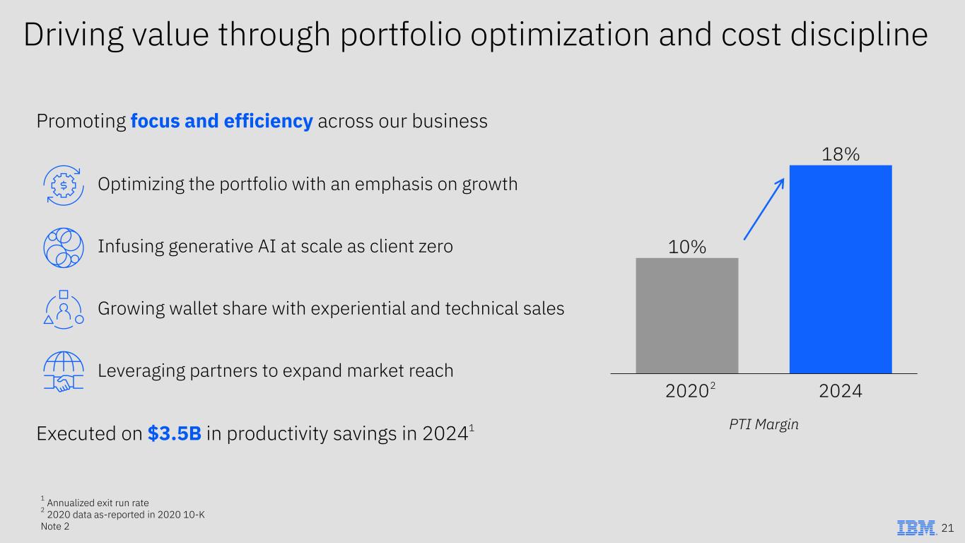 Driving value through portfolio optimization and cost discipline 1 Annualized exit run rate 2 2020 data as-reported in 2020 10-K Note 2 PTI Margin Promoting focus and efficiency across our business Optimizing the portfolio with an emphasis on growth Infusing generative AI at scale as client zero Growing wallet share with experiential and technical sales Leveraging partners to expand market reach Executed on $3.5B in productivity savings in 20241 21 2
