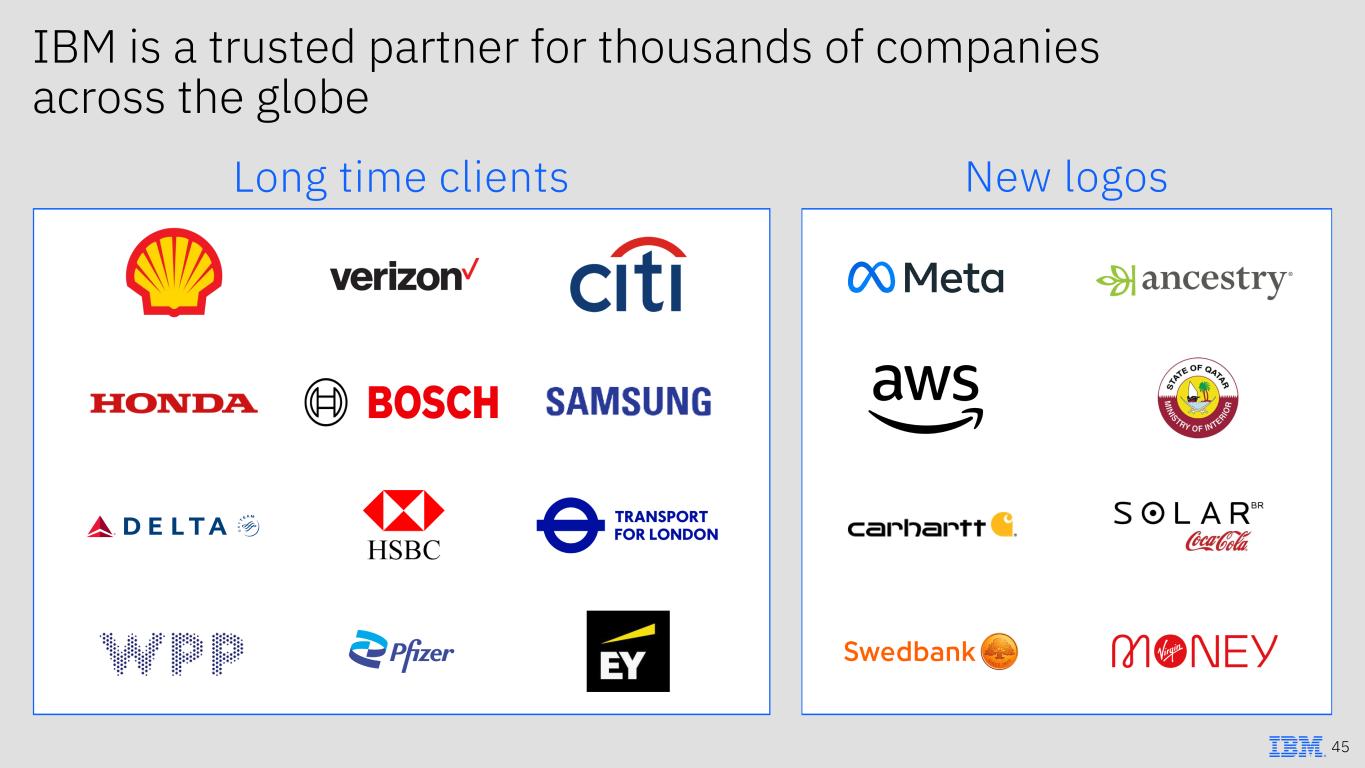 IBM is a trusted partner for thousands of companies across the globe New logosLong time clients 45