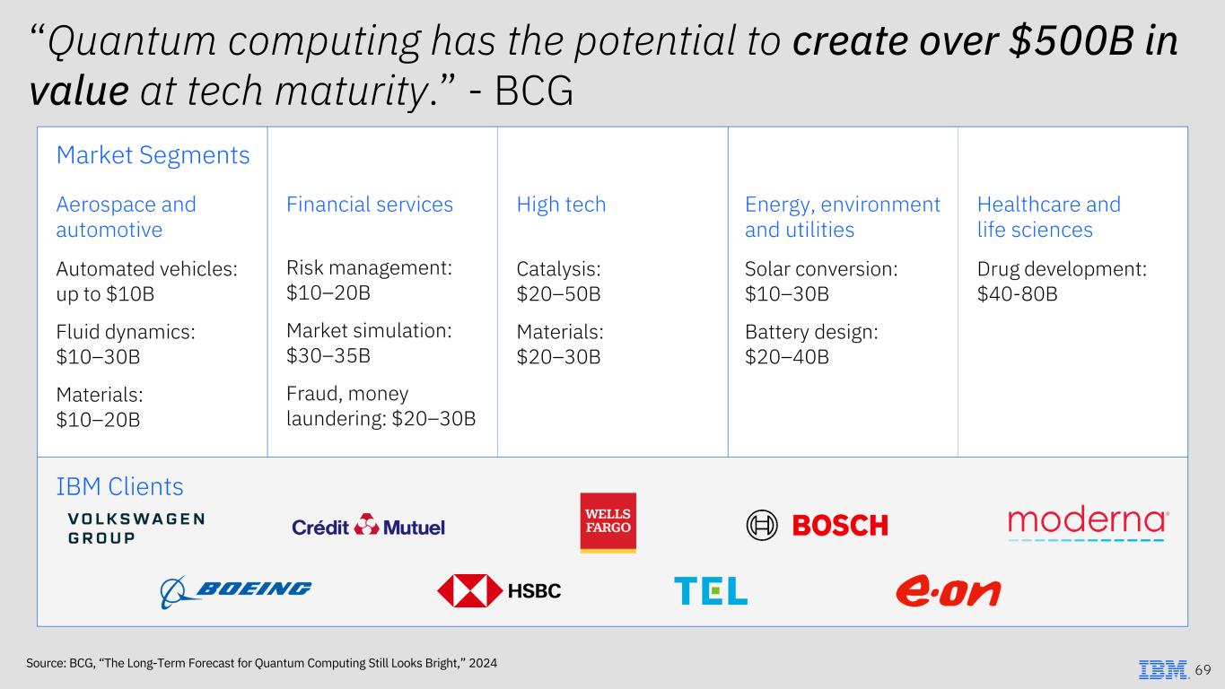 “Quantum computing has the potential to create over $500B in value at tech maturity.” - BCG Source: BCG, “The Long-Term Forecast for Quantum Computing Still Looks Bright,” 2024 69