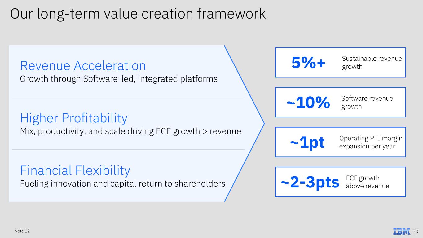 ~1pt Operating PTI margin expansion per year Revenue Acceleration Growth through Software-led, integrated platforms Higher Profitability Mix, productivity, and scale driving FCF growth > revenue Financial Flexibility Fueling innovation and capital return to shareholders 5%+ Sustainable revenue growth ~2-3pts FCF growth above revenue Our long-term value creation framework ~10% Software revenue growth 80Note 12