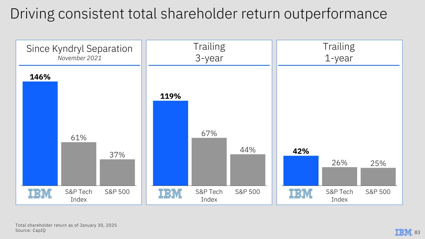 Driving consistent total shareholder return outperformance Since Kyndryl Separation November 2021 Trailing 3-year Trailing 1-year Total shareholder return as of January 30, 2025 Source: CapIQ 83