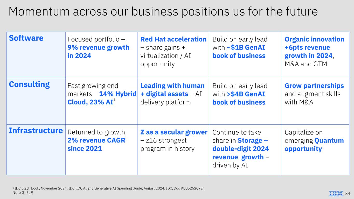 Momentum across our business positions us for the future 1 IDC Black Book, November 2024, IDC; IDC AI and Generative AI Spending Guide, August 2024, IDC, Doc #US52520724 Note 3, 6, 9 84