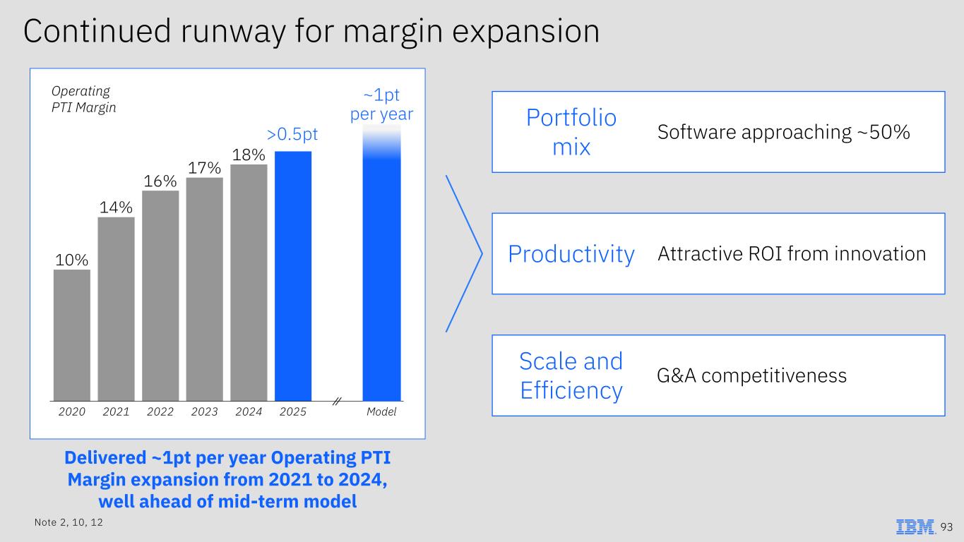 Continued runway for margin expansion Portfolio mix Software approaching ~50% Productivity Attractive ROI from innovation Scale and Efficiency G&A competitiveness 93 Delivered ~1pt per year Operating PTI Margin expansion from 2021 to 2024, well ahead of mid-term model Note 2, 10, 12