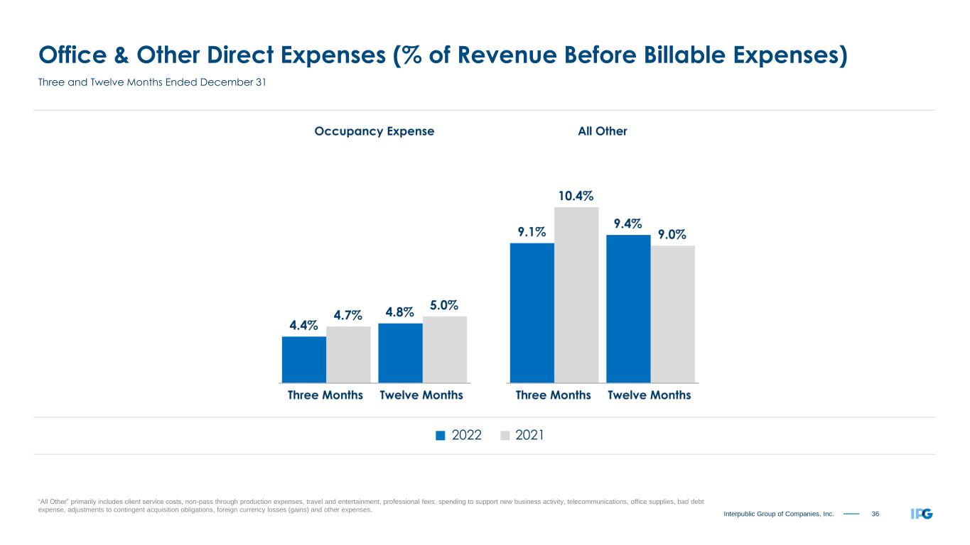 35Interpublic Group of Companies, Inc. Office & Other Direct Expenses % of Revenue Before Billable Expenses Twelve Months Ended December 31