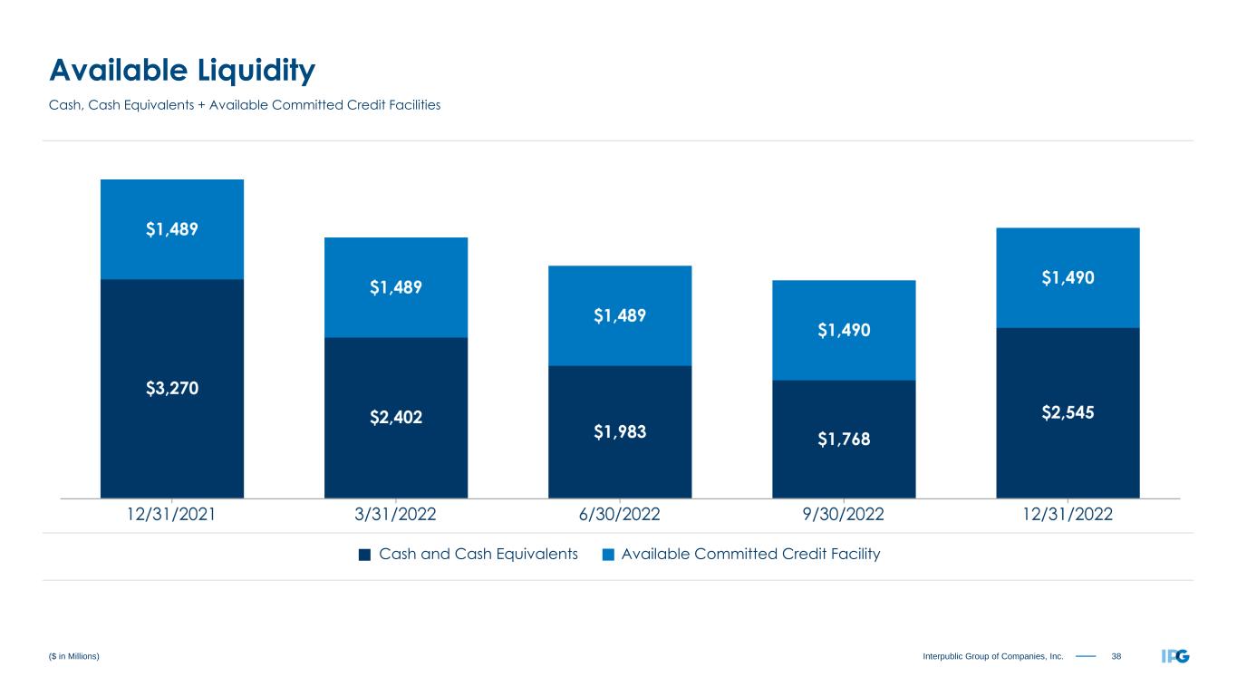 38Interpublic Group of Companies, Inc. ($ in Millions) Available Liquidity Cash, Cash Equivalents + Available Committed Credit Facilities Available Committed Credit FacilityCash and Cash Equivalents