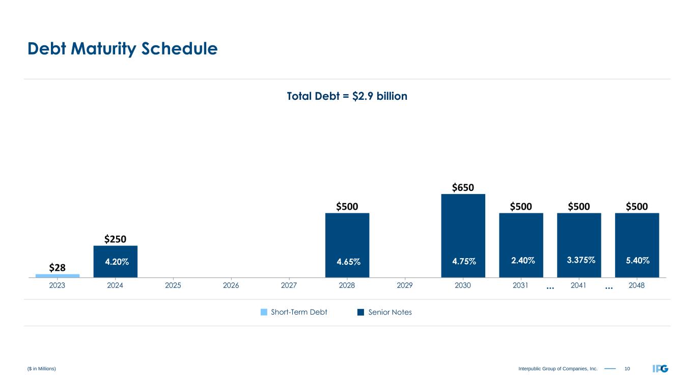 10Interpublic Group of Companies, Inc. Short-Term Debt Senior Notes 4.65% 5.40%2.40%4.20% Total Debt = $2.9 billion ($ in Millions) Debt Maturity Schedule 4.75% 3.375% ... ...