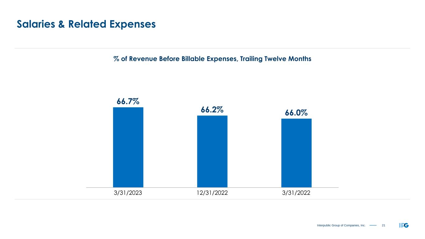 21Interpublic Group of Companies, Inc. Salaries & Related Expenses % of Revenue Before Billable Expenses, Trailing Twelve Months