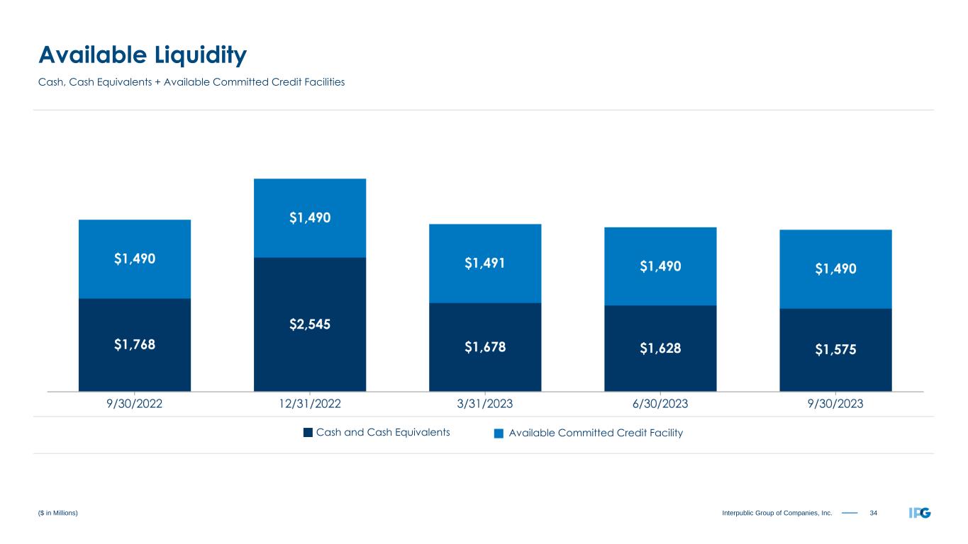 34Interpublic Group of Companies, Inc. ($ in Millions) Available Liquidity Cash, Cash Equivalents + Available Committed Credit Facilities Available Committed Credit FacilityCash and Cash Equivalents