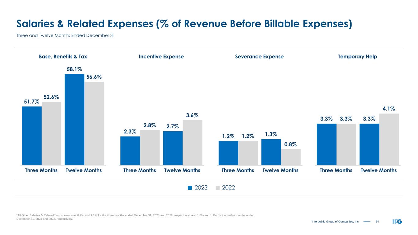 33Interpublic Group of Companies, Inc. Salaries & Related Expenses % of Revenue Before Billable Expenses Twelve Months Ended December 31