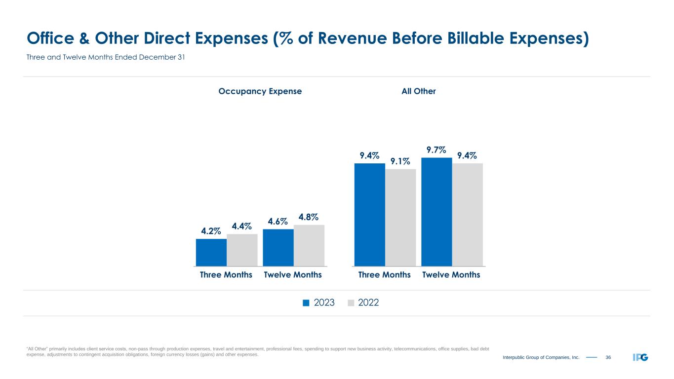 35Interpublic Group of Companies, Inc. Office & Other Direct Expenses % of Revenue Before Billable Expenses Twelve Months Ended December 31