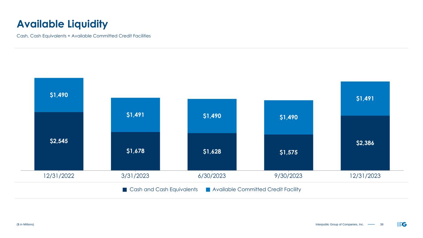 38Interpublic Group of Companies, Inc. ($ in Millions) Available Liquidity Cash, Cash Equivalents + Available Committed Credit Facilities Available Committed Credit FacilityCash and Cash Equivalents