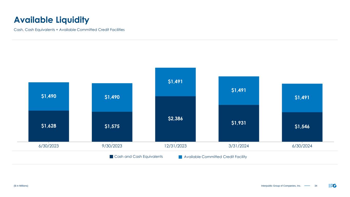 34Interpublic Group of Companies, Inc. ($ in Millions) Available Liquidity Cash, Cash Equivalents + Available Committed Credit Facilities Available Committed Credit FacilityCash and Cash Equivalents
