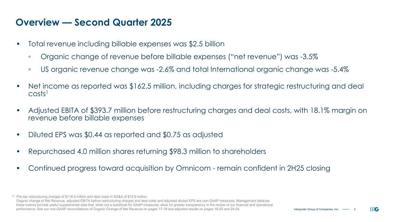 Interpublic Group July 22, 2025 SECOND QUARTER 2025 EARNINGS CONFERENCE CALL