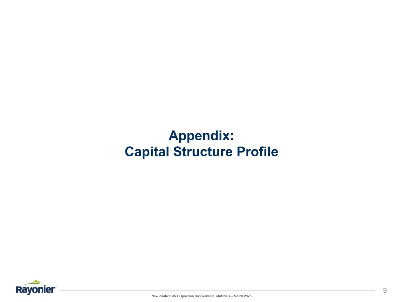 New Zealand JV Disposition Supplemental Materials – March 2025 Appendix: Capital Structure Profile 9