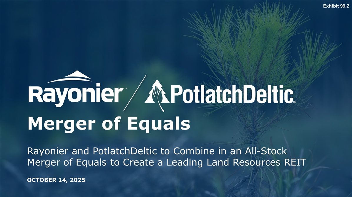 Exhibit 99.2 Merger of Equals Rayonier and PotlatchDeltic to Combine in an All-Stock Merger of Equals to Create a Leading Land Resources REIT OCTOBER 14, 2025