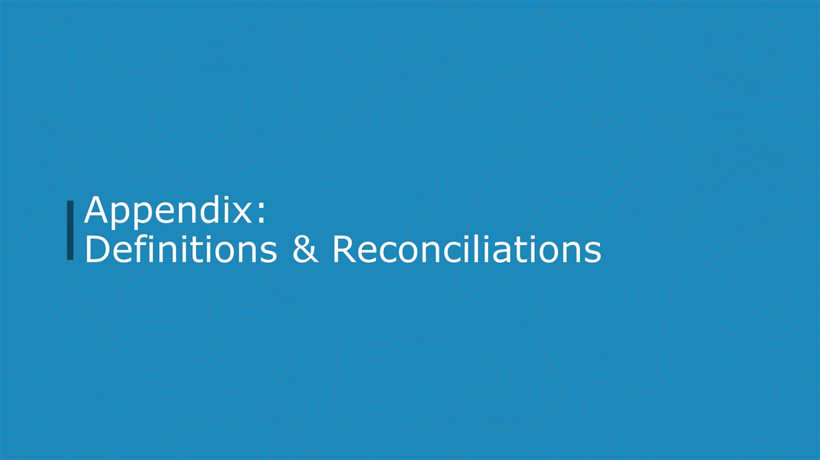 PotlatchDeltic Reconciliation of Operating Income (Loss) to Adjusted EBITDDA by Segment Wood ($ in millions) Timberlands Products Real Estate Corporate Eliminations Total Last twelve months ending June 30, 2025 Operating Income (Loss) $87.4 ($26.3) $48.5 ($50.7) $3.4 $62.4 Depreciation, depletion & amortization 64.3 37.9 0.6 0.8 — 103.6 Basis in real estate — — 47.6 (0.0) — 47.6 Net gain (loss) on disposal of assets — 1.0 (0.0) — — 1.0 Segment Adjusted EBITDDA $151.8 $12.7 $96.7 ($50.0) $3.4 $214.6 APPENDIX: DEFINITIONS & RECONCILIATIONS 22