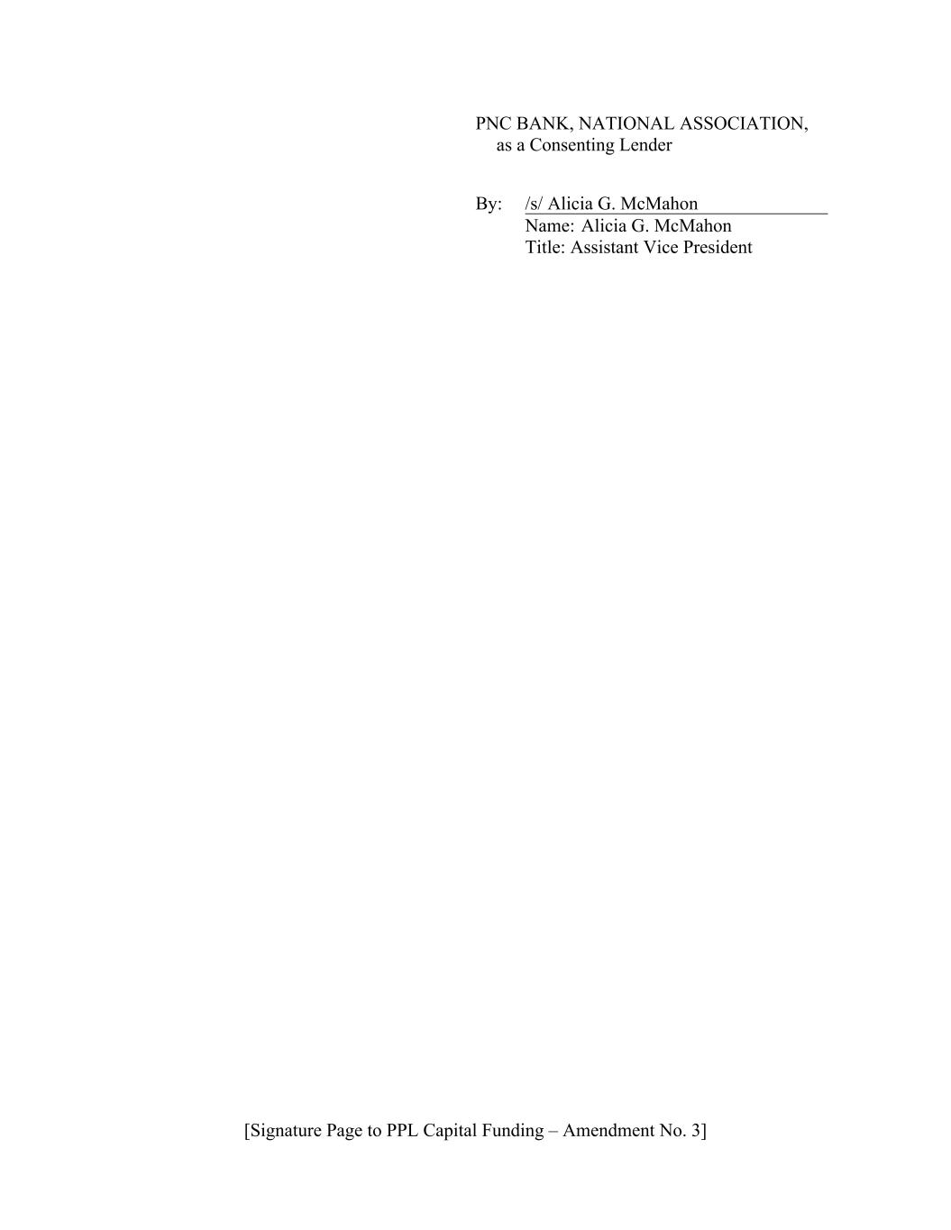 [Signature Page to PPL Capital Funding – Amendment No. 3] PNC BANK, NATIONAL ASSOCIATION, as a Consenting Lender By: /s/ Alicia G. McMahon Name: Alicia G. McMahon Title: Assistant Vice President