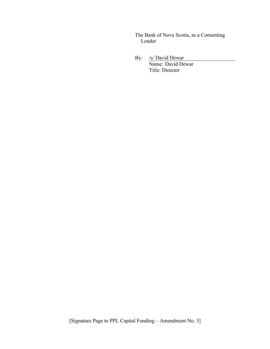 [Signature Page to PPL Capital Funding – Amendment No. 3] The Bank of Nova Scotia, as a Consenting Lender By: /s/ David Dewar Name: David Dewar Title: Director