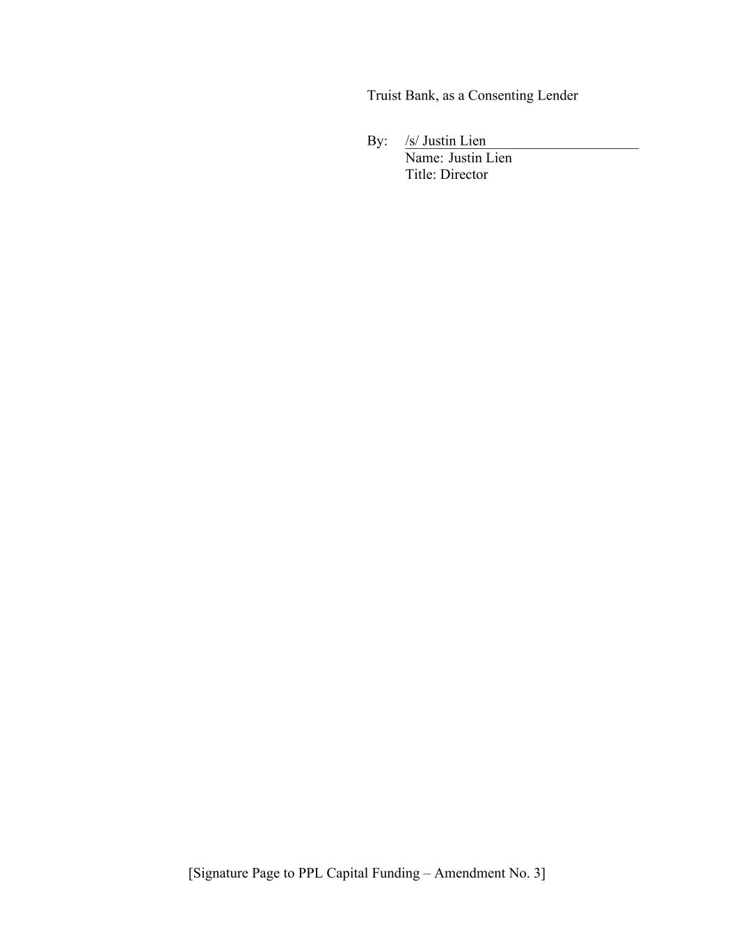 [Signature Page to PPL Capital Funding – Amendment No. 3] Truist Bank, as a Consenting Lender By: /s/ Justin Lien Name: Justin Lien Title: Director