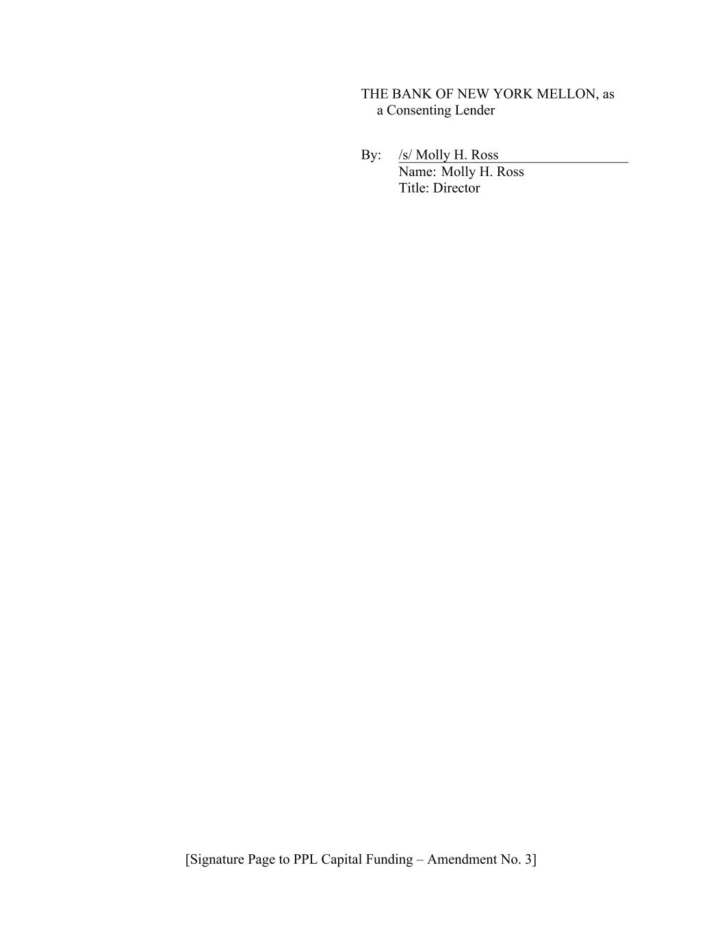 [Signature Page to PPL Capital Funding – Amendment No. 3] THE BANK OF NEW YORK MELLON, as a Consenting Lender By: /s/ Molly H. Ross Name: Molly H. Ross Title: Director