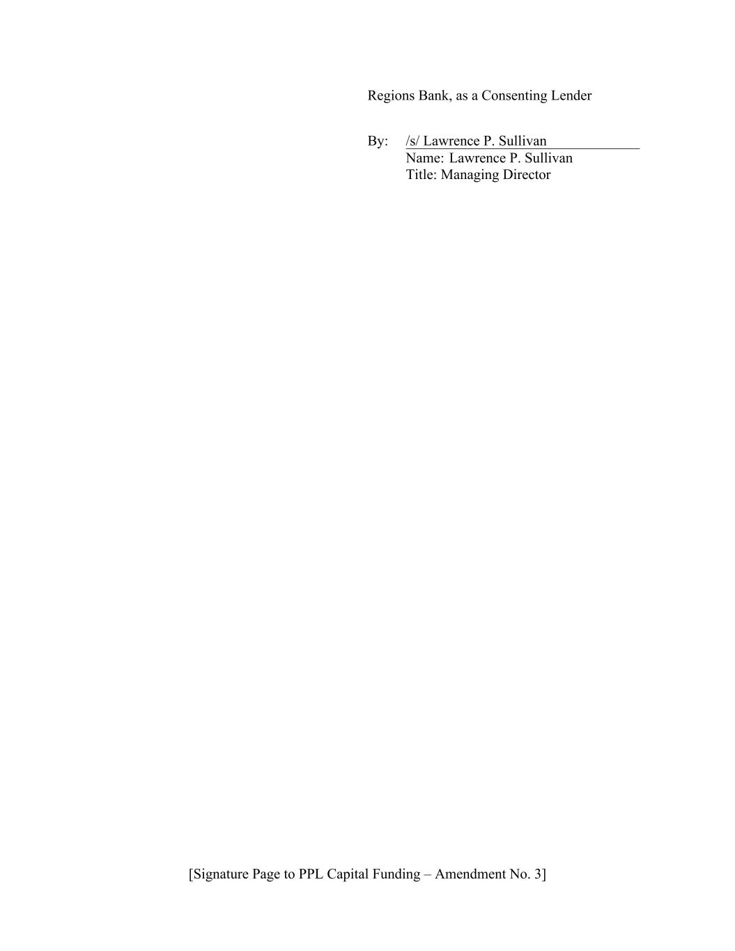 [Signature Page to PPL Capital Funding – Amendment No. 3] Regions Bank, as a Consenting Lender By: /s/ Lawrence P. Sullivan Name: Lawrence P. Sullivan Title: Managing Director